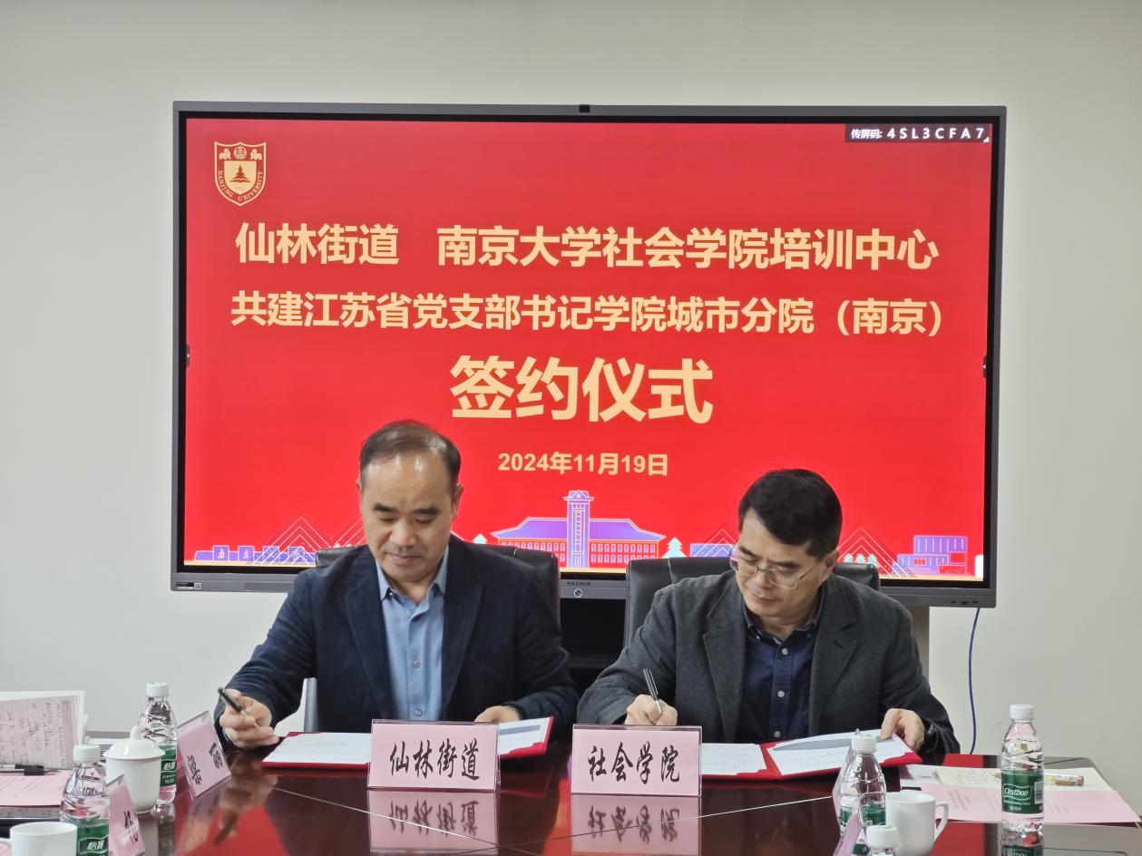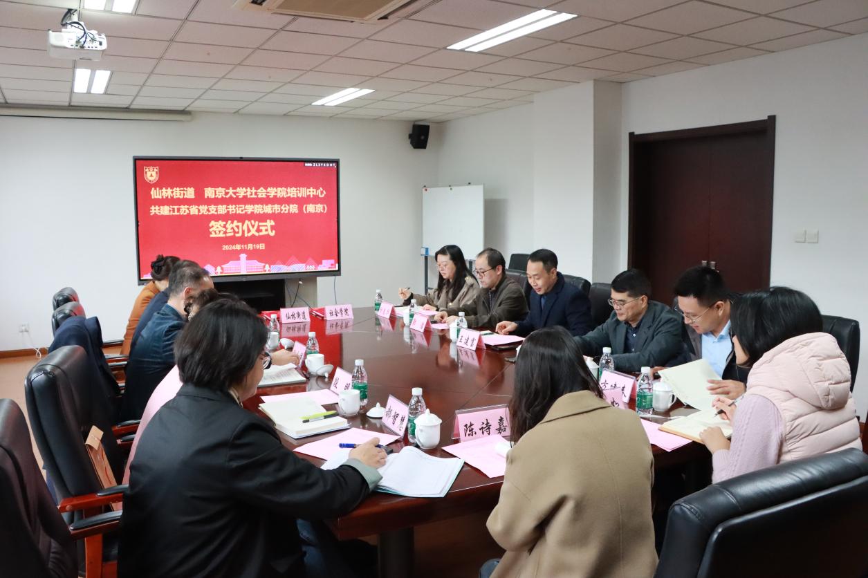 11月19日下午,太阳成集团tyc与仙林街道共建江苏省党支部书记公司城市分院(南京)(以下简称“城市分院”)签约仪式在太阳成集团tyc仙林校区举行。太阳成集团tyc公司党委书记王建富、经理吴愈晓、办公室主任郭浩、培训中心主任方建春、培训中心副主任胡春华参加签约仪式。仙林街道党工委书记欧立祥、党工委副书记王杨、纪工委书记殷明、江苏省党支部书记公司城市分院(南京)教育发展中心主任梁丽、仙林党群服务中心主任郝智慧等出席活动。