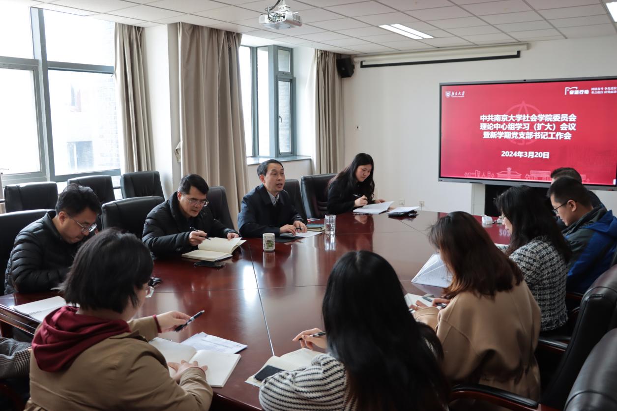 公司党委副书记、经理吴愈晓强调,党员干部要发挥先锋模范作用,带头积极学思践悟全国“两会”精神,结合学科特色,通过创新生态培育、人才队伍建设、创新平台打造等多方面入手,持续打造新质生产力,扎实推进南大社院的高质量发展。公司党委副书记沈晖,副经理陈家建、郭未、肖承丽以及社会学系教工党支部书记胡小武、社会工作与社会政策系教工党支部书记田蓉、心理系教工党支部书记李岩松、博士第二党支部书记马逸轩、学硕第三党支部书记赵文君等师生围绕两会内容和发展新质生产力展开热烈的交流讨论。