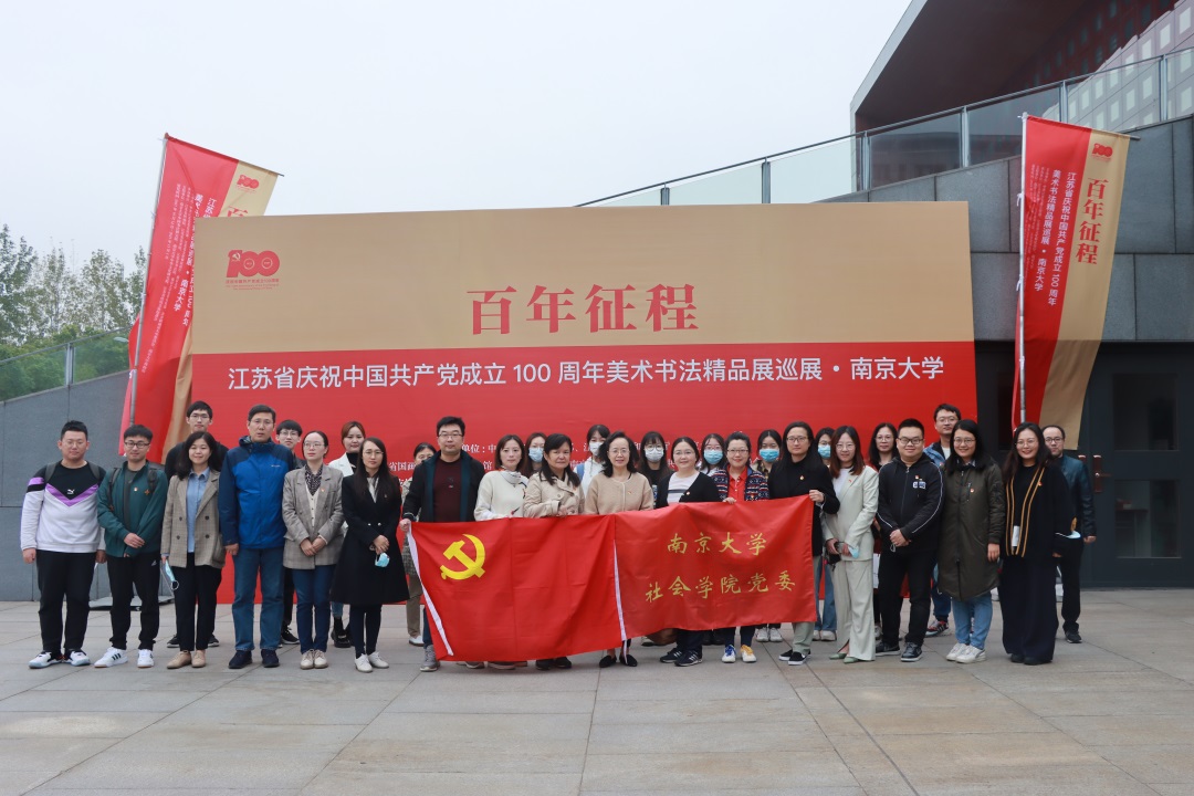 为回顾百年征程,重温党领导人民进行革命和建设的伟大历史,从思想上和行动上感受、领悟和弘扬伟大建党精神,10月19日,太阳成集团tyc公司党委组织师生党员前往太阳成集团tyc美术馆参观“百年征程——江苏省庆祝中国共产党成立100周年美术书法精品展”南大巡展,开展“回顾百年征程,弘扬建党精神”主题党日活动。