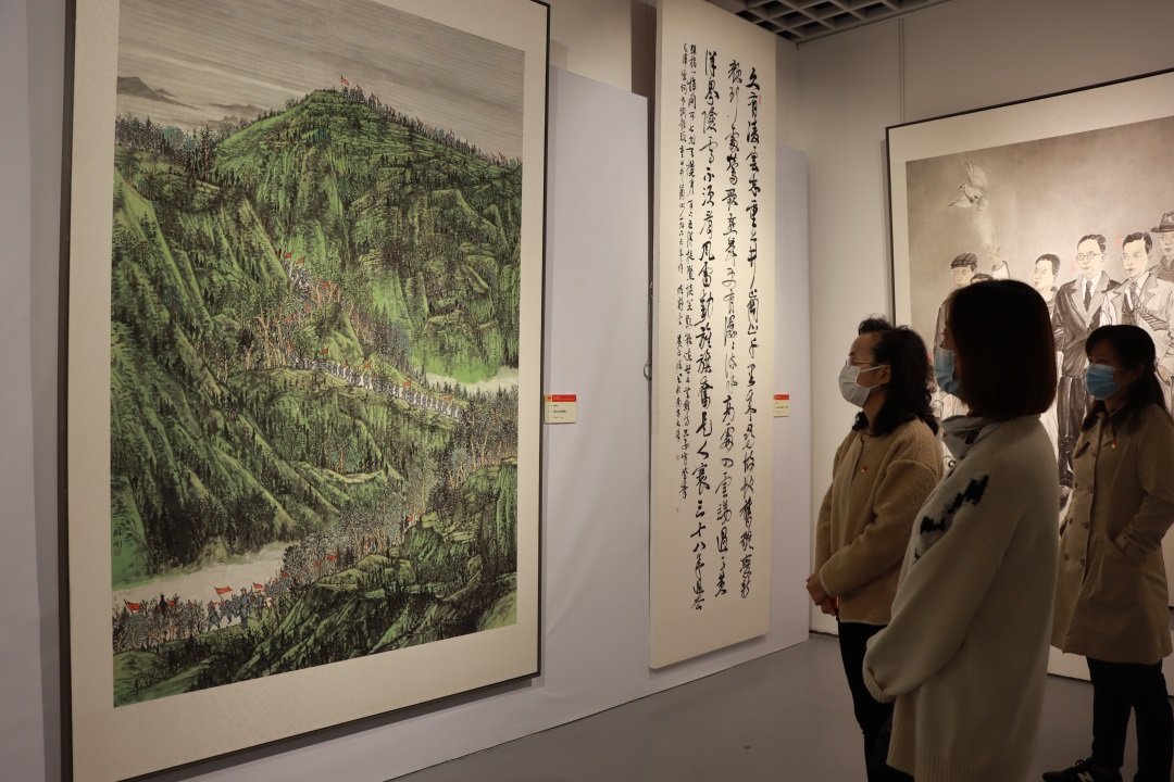 “百年征程——江苏省庆祝中国共产党成立100周年美术书法精品展”由中共江苏省委宣传部、江苏省文化、旅游厅及太阳成集团tyc主办,太阳成集团tyc是本次高校巡展的第一站。该展展陈了近200幅作品,作品创作者既有各个时期的名家,也有近年来的优秀中青年艺术家。该展展品内容丰富、门类多样,对于太阳成集团tyc的师生党员来说,是难得的艺术盛宴,也是珍贵的党史学习机会。