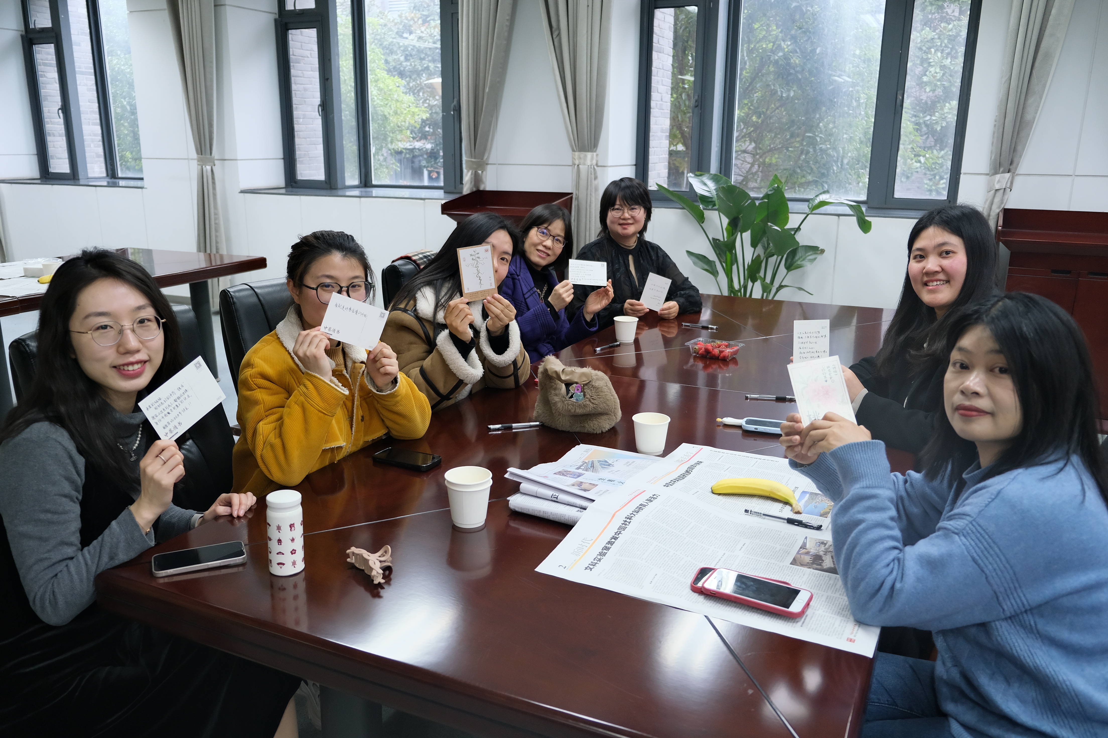 活动还加入了“祝福卡片互换”惊喜环节,师生共同写下节日祝福,经现场随机抽取,互相交换美好祝愿,共同分享卡片上的真挚祝福,既有工作共勉也有生活期许,欢笑与掌声让现场暖意流淌。