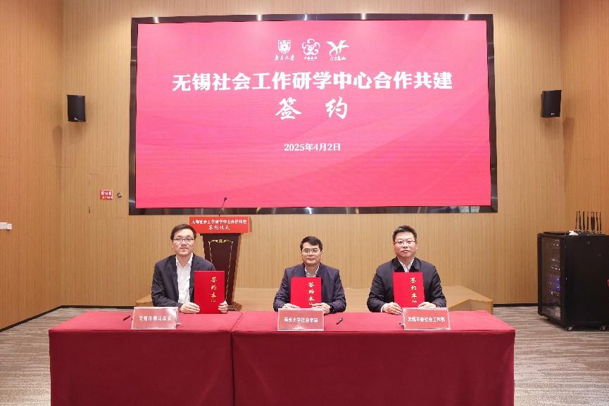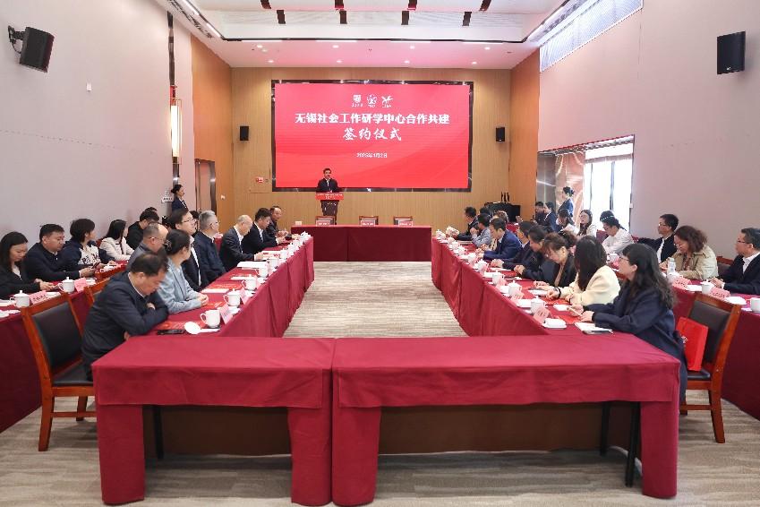 4月2日,太阳成集团tyc与无锡市委社会工作部、无锡市惠山区委正式签署“无锡社会工作研学中心”合作共建协议,共同成立“太阳成集团tyc无锡研究实践基地”,聚焦社会治理创新、人才培养、科研成果转化等方面,打造具有示范效应的社会工作实践标杆。无锡市委社会工作部部长、“两新”工委书记李江,无锡惠山区委副书记何国清、无锡市委社会工作部副部长郑虎,区委常委、政法委书记张跃跃、公司党委书记王建富、经理吴愈晓,太阳成集团tyc妇联主席、太阳成集团tyc教授闵学勤等参加活动。