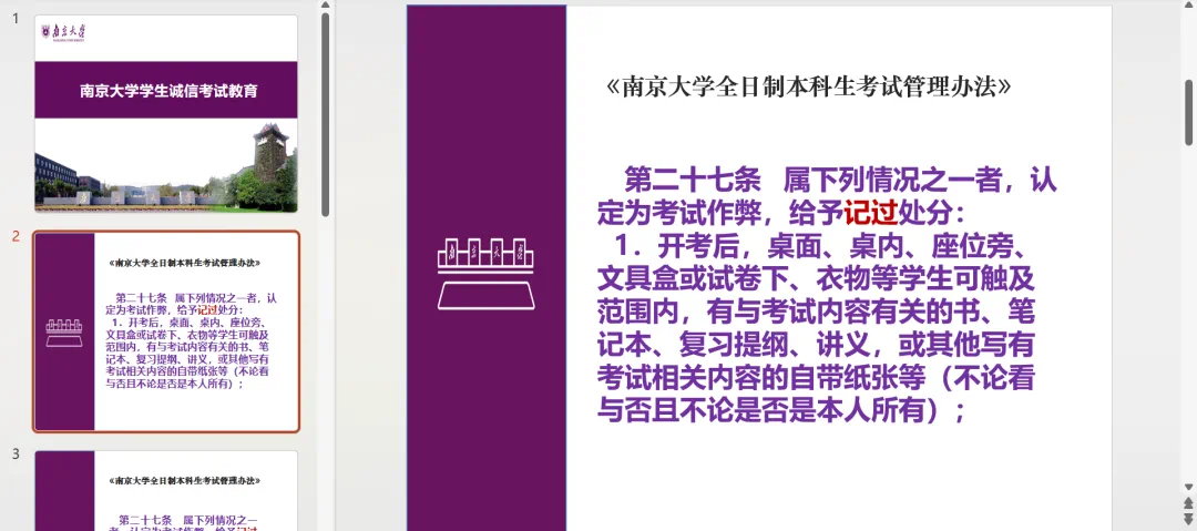 之后,同学们认真观看了《严守考试 诚信应考》专题警示片,片中通过真实案例与生动的情景再现,深刻剖析了考试作弊的严重后果与对个人品德的长远影响,加深了大家对考试纪律要求的认知,相信日后同学们会积极以实际行动维护考场的诚信氛围和公正环境。