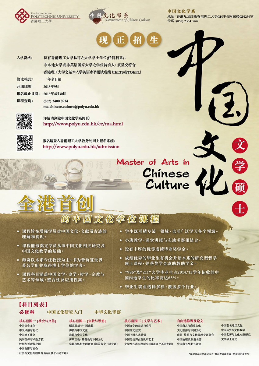 香港理工大学中国文化文学硕士招生