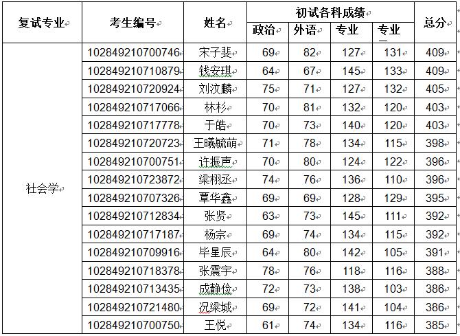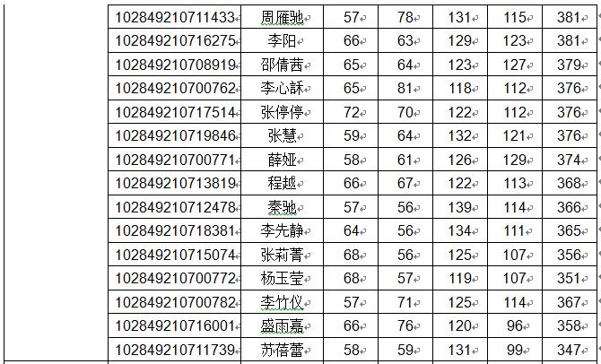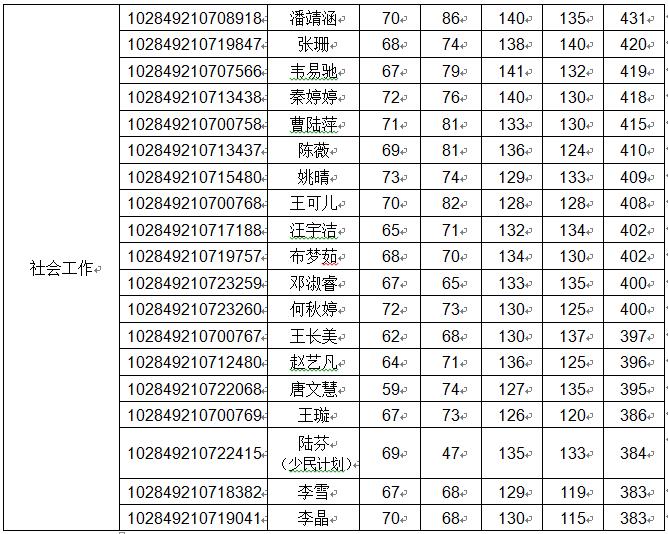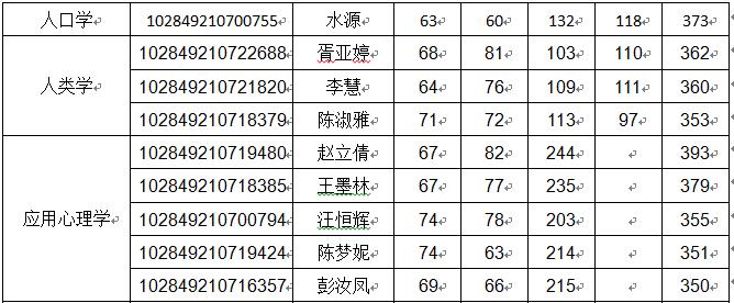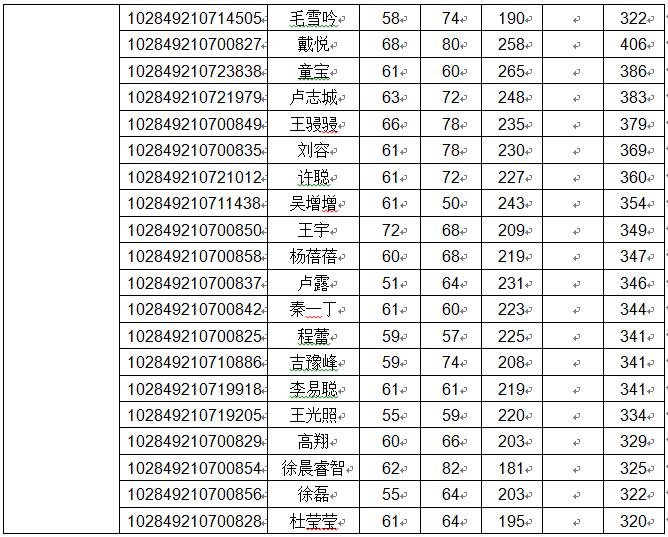 一、复试资格 符合公司规定的单科及总分要求,根据各专业录取计划,以总分排序,从高至低确定差额复试人选,差额比例原则上不低于120%. 二、各专业复试分数线 社会学专业:总分 385 单科:第一门55、第二门55、第三门90、第四门90 人口学专业:总分370 单科:第一门55、第二门55、第三门90、第四门90 人类学专业:总分 350 单科:第一门55、第二门55、第三门90、第四门90 基础心理学专业:总分 350 单科:第一门55、第二门55、第三门180 应用心理学专业:总分 350 单科:第一门55、第二门55、第三门180 社会工作专业硕士:总分 340 单科:第一门55、第二门55、第三门90、第四门90 应用心理专业硕士:总分 320 单科:第一门50、第二门50、第三门180 三、各专业拟录取人数 ![]() 拟接收院内调剂专业: 035200社会工作(非全日制):调剂人数12人, 要求:从进入复试的社会工作全日制考生中进行调剂; 045400应用心理(非全日制):调剂人数11人, 要求:从进入复试的应用心理全日制考生中进行调剂. 四、进入复试的考生名单 ![]() ![]() ![]() ![]() ![]() ![]() 五、复试形式 1、笔试 闭卷考试,成绩满分为150分,考试时间3小时。 社会学专业:社会学综合;人口学:人口学综合;人类学:人类学综合 应用心理学:应用心理学综合;社会工作:社会工作综合; 应用心理:心理学综合 以上除应用心理学(学硕)考生上机考试外,其他专业均为笔试 复试参考书目请查看: http:/notice/n5/1602.html 2、面试 由面试考核小组对考生进行考核,成绩满分为150分 其中,综合素质测试满分为100分,外语听力及口语测试满分为50分。 3、同等学力加试 形式:笔试;时间:每门科目3小时; 科目一:普通心理学、科目二:心理测量 加试合格线90分,加试科目成绩不计入复试总成绩,有1门加试科目低于90分,不予录取 六、录取办法 1、以初试成绩加复试成绩(含笔试和面试)的总分排序,在专业内从高分至低分择优录取,非全日制考生单列排序。 2、面试不合格者(面试成绩低于90分)不予录取。 3、确定拟录取名单 公司根据招生目录、招生计划、复试情况、总成绩排名、考生的思想政治素质与品德以及身体健康状况等确定拟录取名单。 七、复试阶段安排 1、体检:体检工作由校医院组织 ①3月18日—20日,上午8:00—11:30; 地点:太阳成集团tyc鼓楼校区校医院(南京市汉口路22号、太阳成集团tyc正大门东侧50米); ②3月21日-22日,上午8:00—11:30; 地点:太阳成集团tyc仙林校区校医院。 注意:体检前一天饮食须清淡,体检当日须空腹,并携带身份证、近期正面免冠一寸照片一张及86元(需微信支付)。 体检工作可以在3月15日开始在电脑上提前预约 (网址:http://hospital.nju.edu.cn:8080,登录名为LS(须大写)+考生编号的最后7位数字,密码为身份证号,只能通过电脑预约,须用IE9以上浏览器)。 因特殊原因需要调整体检时间的院系或考生可直接与太阳成集团tyc医院防保科联系(025-83592347转8118)。 2、缴费:复试费80元∕人 缴费流程和支付码见附件,3月15日前请务必完成缴费。 3、资格审核 时间:3月19日上午8:30-11:30 地点:太阳成集团tyc仙林校区太阳成集团tyc336室 资格审查时考生应同时提交以下材料(请预先按以下顺序装订好复印件) (1)身份证原件及复印件(正反面复印在同一页); (2)毕业证书(往届生)、员工证(应届生)原件及复印件,员工证复印件应有本人照片和入学年月、学号、注册情况等; (3)准考证(教育部研招网3月1日-4月30重新开通准考证打印功能); (4)考生在校学习成绩表复印件(应届本科毕业生由教务处提供并加盖公章,非应届本科毕业生由考生档案所在单位人事部门提供并加盖公章); (5)能够证明考生本人外语能力的相关材料(如:CET-4、CET-6、IELTS或TOEFL成绩单等 (6)请考生提交一页(A4纸)个人陈述并签名,内容包括个人简介、政治态度、思想表现、道德品质、遵纪守法、诚实守信等方面。 4、参加考试 时间:3月19日下午14:00-17:00 地点: 社会学、人口学、人类学(20人):太阳成集团tyc118教室 应用心理学(学硕):202机房 社会工作(24人):太阳成集团tyc119教室 社会工作(10人):太阳成集团tyc101教室 应用心理(专硕)(40人):太阳成集团tyc101教室 请各位考生13:40准时到达考场,公司统一进行复试及录取流程讲解 同等学力加试安排 3月20号上午 9:00-12:00 普通心理学 3月20号下午14:00-17:00 心理测量 地点:太阳成集团tyc104室 5、面试 人类学、人口学专业 时间:3月19日上午9:00-12:00 社会学专业 时间:3月20日下午14:00-17:00 社会工作、应用心理学(学硕)、应用心理(专硕全日制) 时间:3月20日9:00-17:00 应用心理(专硕非全日制) 时间:3月21日9:00-17:00 面试具体地点及分组名单:届时请见太阳成集团tyc一楼大厅公告 八、考生咨询及申诉渠道 (1)联系部门:太阳成集团tyc研究生办公室 (2)联系电话:025-89680954 (3)电子邮箱:hzcao@nju.edu.cn (4)办公地点:太阳成集团tyc仙林校区太阳成集团tyc336室 九、公司不接受任何理由的破格申请 十、其它事项 本细则未涉及部分,除“太阳成集团tyc硕士研究生复试录取工作意见”有明确规定,由本院(系)研究生招生工作领导小组负责解释。