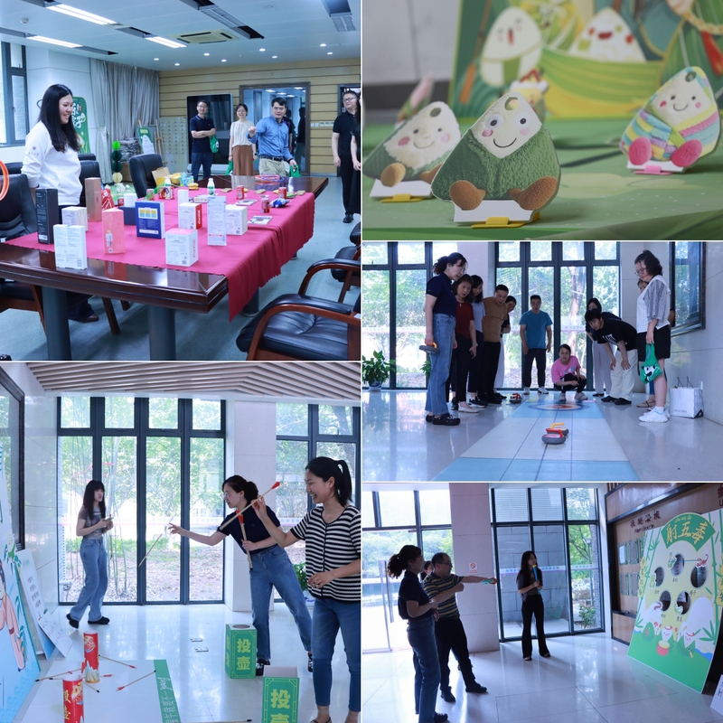 活动分为校庆主题趣味赛、端午民俗运动和体重管理健康赛三大板块。在校庆主题趣味赛的“校庆拼图接力”项目中,老师们你追我赶,在运动的同时重温公司发展历程,将对公司的深厚情感融入到每一次的拼图传递中,现场洋溢着浓厚的校庆喜悦氛围。端午民俗运动环节,充满传统韵味的项目吸引了众多老师。“钓粽子”时,老师们手持绑着钩子的竹竿,全神贯注地瞄准目标,小心翼翼地将“粽子”钓起;“射五毒”现场,大家拿起弓箭,精准射击画有“五毒”的靶子,寓意祛除灾祸;“好运投壶”处,老师们站在横线外,屏气凝神,将“艾草箭”奋力投向壶中,每一次投中都引发阵阵欢呼,大家在欢声笑语中感受着端午民俗的独特魅力。