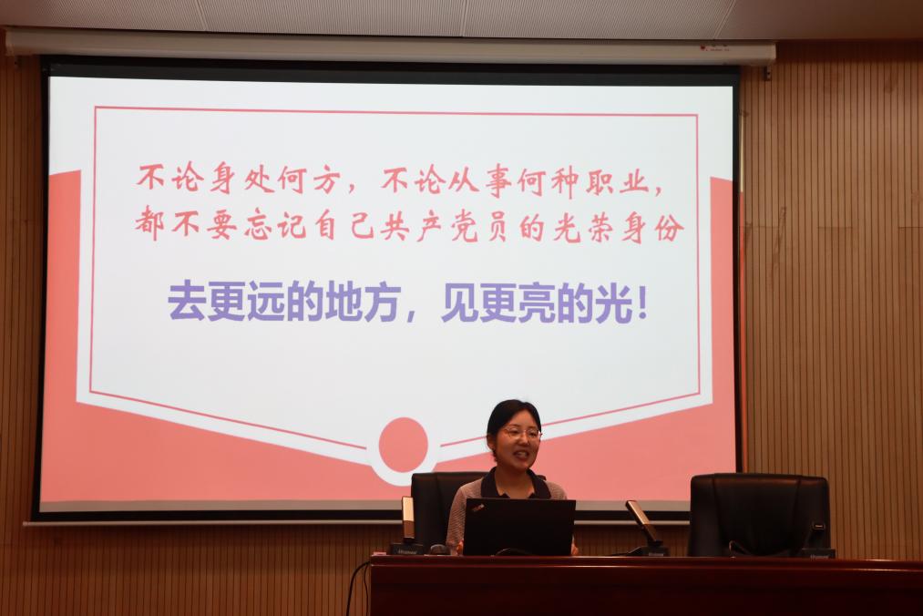 公司党委副书记曹慧中着重强调了党组织关系转接的重要性,向毕业生党员介绍了党组织关系转接的具体工作,从党组织关系转接流程、注意事项、特殊情况处理等几个方面进行详细讲解。她嘱托各位毕业生党员无论身处何方都要牢记党员身份,心系“国家事”、肩扛“国家责”,牢记初心使命,争当强国先锋,在青春赛道跑出最好成绩。