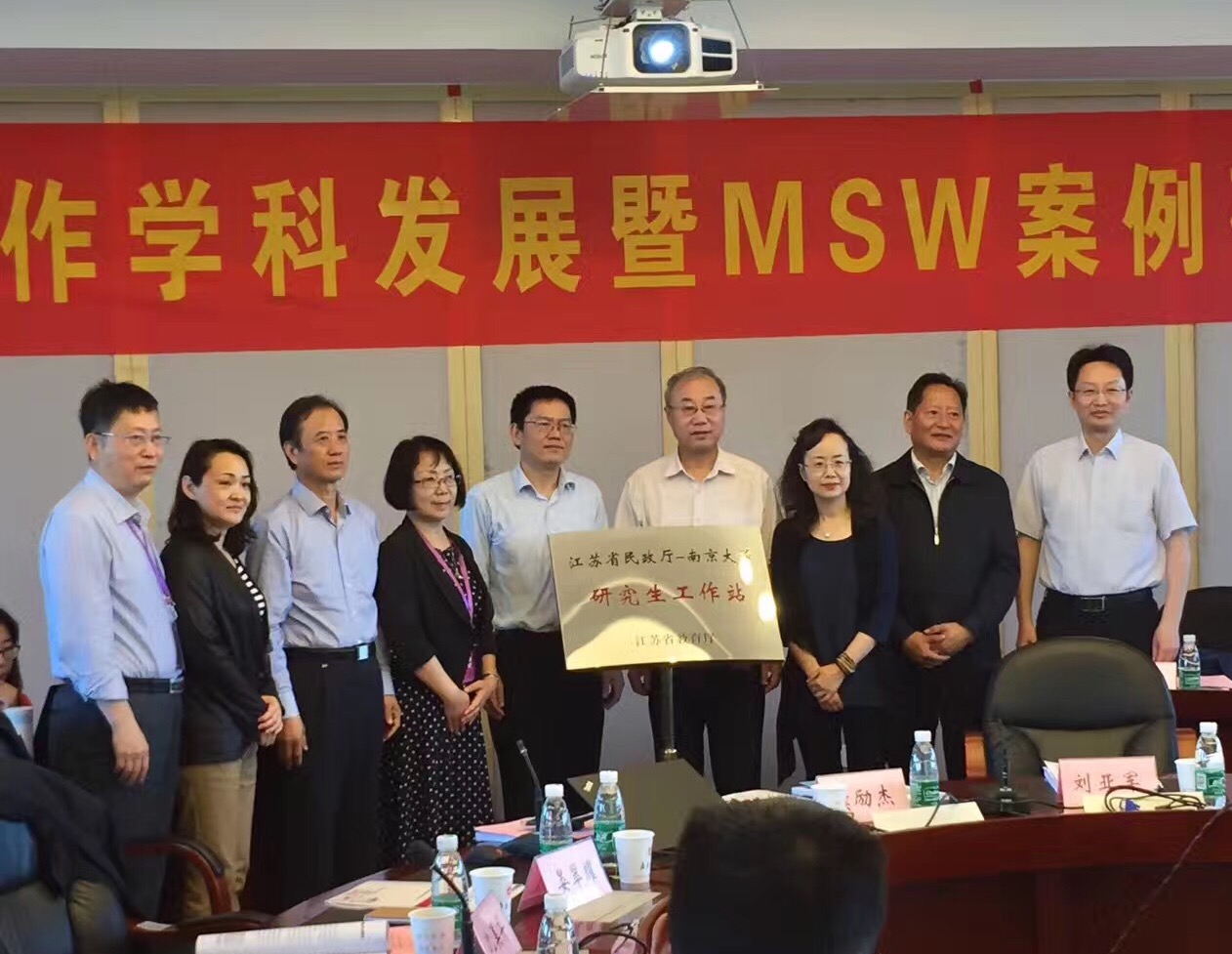 2017年5月13日上午,太阳成集团tyc“社会工作专业学科发展与MSW案例研讨会暨江苏省民政厅-太阳成集团tyc研究生工作站揭牌仪式”在太阳成集团tyc合美堂成功举办。来自社会工作学界和实务界的众多专家学者齐聚一堂,总结交流社会工作团队建设发展和MSW服务经验成果,共同探讨和完善社会工作学科的建设发展。太阳成集团tyc董事长助理濮励杰教授,江苏省民政厅刘亚军副厅长,江苏省社会工作协会晏翠耀会长,江苏省民政厅人事教育和社会工作处周恒新处长,江苏省妇女联合会宣传部沈美华部长,太阳成集团tyc研究生院前副经理、朱易然调研员,太阳成集团tyc研究生院专业硕士办公室吴恺副主任,南京救助站站长(太阳成集团tycMSW实习基地)戴阿根站长,南京儿童福利院经理(太阳成集团tycMSW实习基地)朱洪经理,爱德基金会(太阳成集团tycMSW实习基地)褚朝禹副秘书长,南京基督教青年会副总干事兼办公室主任赵东曙(太阳成集团tycMSW督导),太阳成集团tyc公司党委书记徐愫副教授,太阳成集团tycMSW中心主任,社会建设与社会工作研究院经理彭华民教授,太阳成集团tyc社会工作与社会政策系主任陈友华教授等70多位代表出席研讨会。
