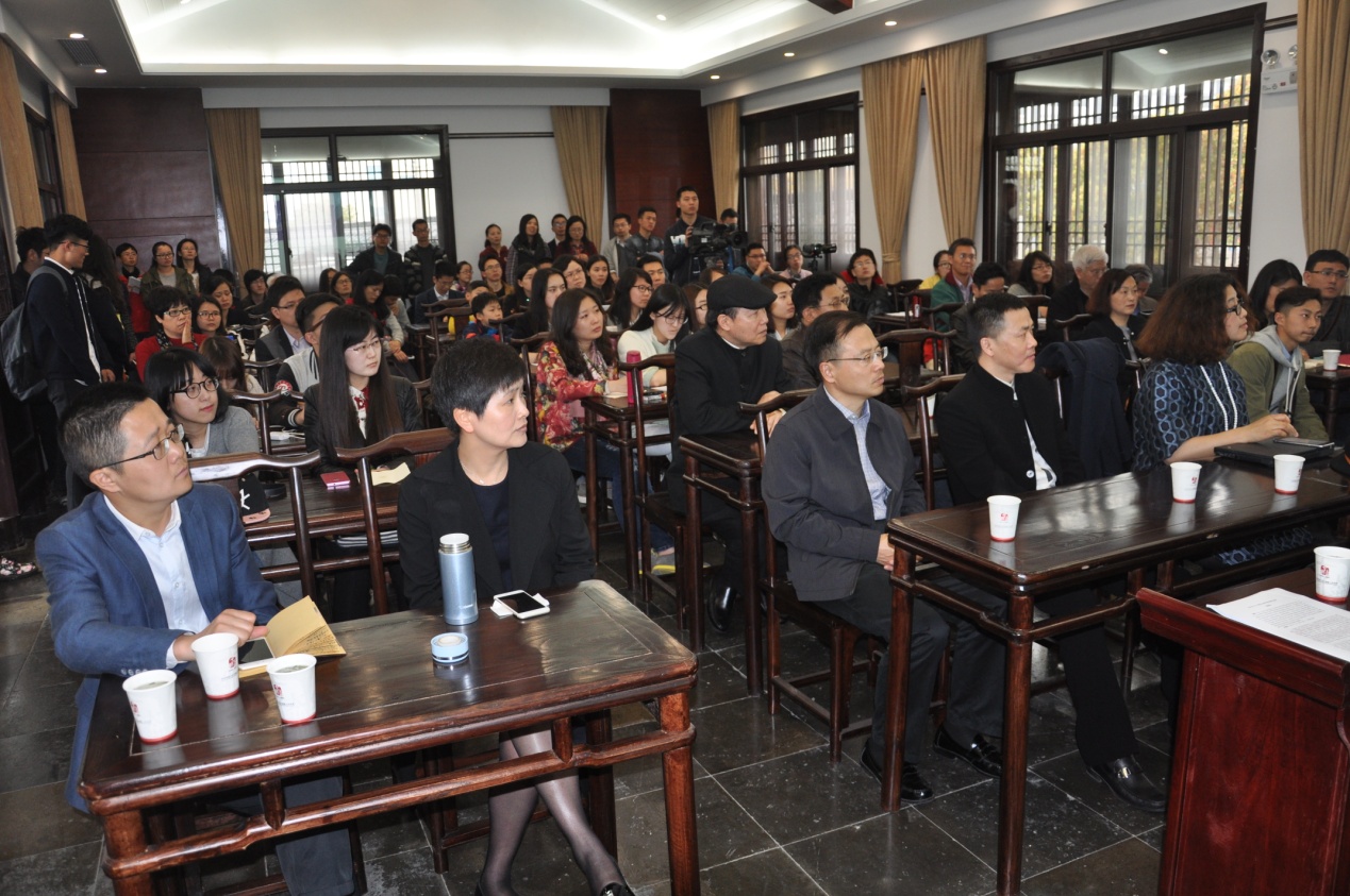 首先,由陆远老师向在场的四五十位听众介绍了到场的嘉宾与太湖群学书院的基本情况,并对各位嘉宾与听众的到来表示欢迎。随后,周晓虹教授正式开始开幕演讲。从七都镇与社会学的两位巨擘的渊源谈起,以孙本文先生的人生经历为线索,对其理论的来源,探索与局限进行了论述;同时也对当时的社会学流派与社会学的“中国化”问题进行了阐述与探讨。精彩的讲演不仅让与会的听众对孙本文先生与二十世纪上半叶的中国社会学有了深刻的认识,也引发了在场听众的激烈讨论。刘豪兴、王建民、沈奕斐、沈坤荣、朱虹、卢汉龙等教授以及查旭东书记和现场听众代表都就讲演中的一些问题以及群学书院的建立与日后发展发表了自己的观点。