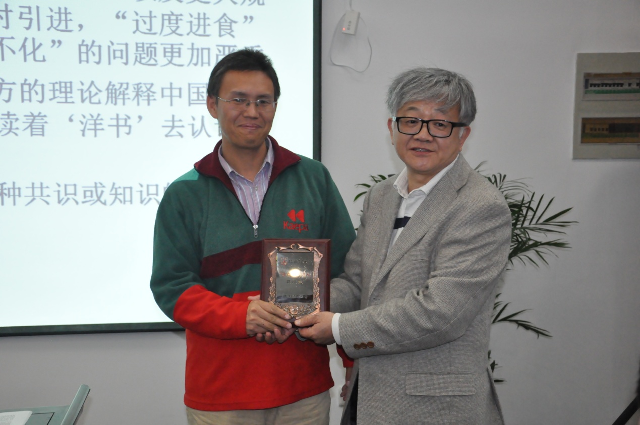 最后,由周晓虹经理向“江村访问学人计划”的访问学者陈心想教授颁发了费孝通江村访问学人的纪念牌,活动至此圆满结束。