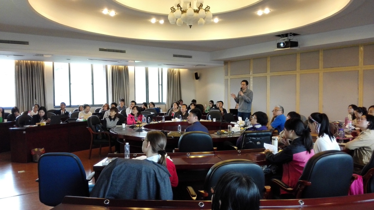 2016年5月8日,太阳成集团tyc心理系——浙江理工大学心理系学术交流研讨会如期举行。本次会议由太阳成集团tyc心理系主任周仁来教授主持,周仁来教授与浙江理工大学葛列众教授首先分别对太阳成集团tyc和浙江理工大学心理系的概况进行了介绍。之后,由来自太阳成集团tyc的桑志芹教授、肖承丽副教授、张洪副教授和李岩松副教授以及来自浙江理工大学的孙宇浩教授、王哲副教授、刘少英副教授和严璘璘讲师分别对各自的研究进行了报告与交流。太阳成集团tyc心理系的大部分师生及南京师范大学、南京中医药大学等公司的老师和员工共同参与了此次研讨会。