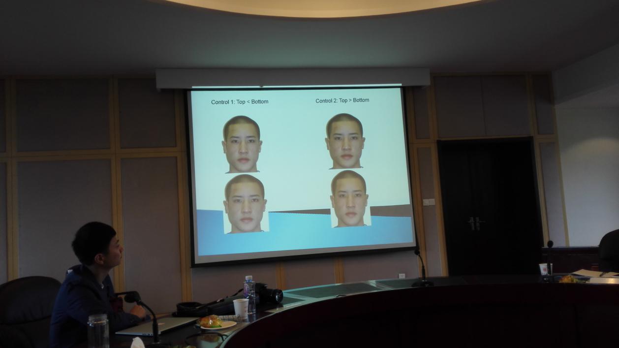 孙宇浩教授聊到此课题的灵感来源于一次有趣的聊天。有一位老师提出当他把同样两张照片左右排列时,会知觉成不同大小。而在进行了尝试和研究之后,孙宇浩教授发现面孔照片左右排列产生的错觉概率接近随机概率,但是上下排列产生错觉的概率很大,大部分情况下,人们会觉得下面的面孔更大。