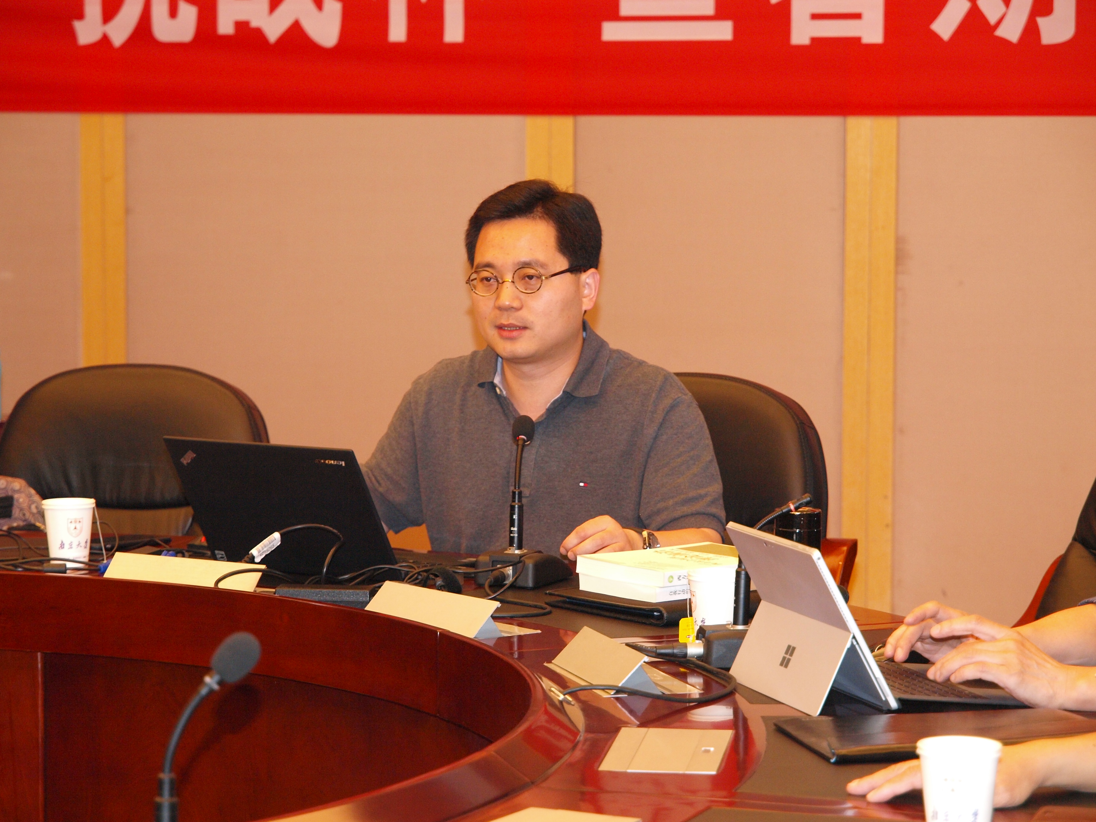 讲演现场 演讲之后,参与合美餐叙的师生们对杨典博士所讲的内容作了讨论,首先发言的是彭华民教授,她说自己是一个坚定的制度主义者(她的博士论文就是借鉴了诺斯的制度理论),自己也从制度理论中引申出几个维度,包括意识形态、政策范式等,而她在考察意识形态时,做了很详细的梳理,所以她想知道,杨典博士是如何对自己演讲中所提到的经济意识形态操作化的。杨典博士回复说,在他的论文中,经济意识形态指示的是“股东价值最大化”,可以通过访谈,阅读报纸等方法,观察这一提法、思路出现的频率。