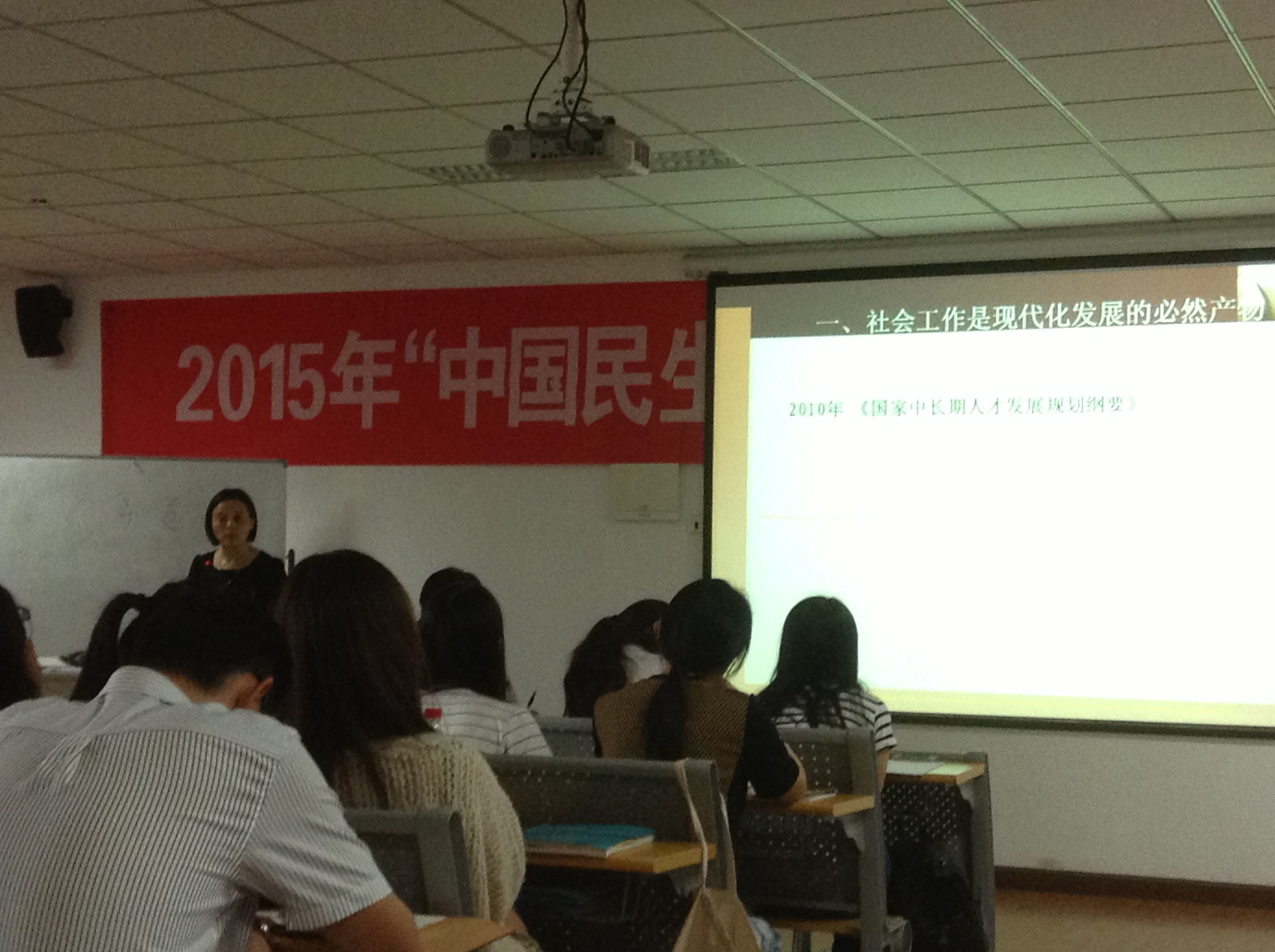接下来,王处长从“明确一个定位和健全三个机制”这一思路出发,向大家展现了南京市社会工作发展的总体思路和未来发展的光明前景。主要运用社会协同、政府简政和三社联动齐发的方式来完善以下六个方面的重点工作,即强化激励保障、专业化人才培育、职业化推进岗位开发、促进机构发展和夯实工作基础。她热切地呼吁大家加入到这个行列,为南京市社会工作的长足发展献上一份热血和青春!