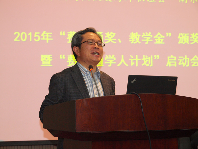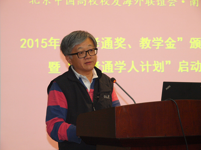 第二项议程由李培松先生介绍中国高校员工海外联谊会,并宣布此次的获奖名单。李秘书长表示今天来到太阳成集团tyc既感高兴又觉紧张,他由一张老照片的故事引入,称前不久机缘巧合看到过费孝通先生的一张老照片,当时站在费老左边的正是现在太阳成集团tyc经理周晓虹教授,当年费老是大师,今天周经理也在学术领域内取得了卓越的成就,这体现了一种学术传承,中国高校员工海外联谊会愿意在学术传承的神圣过程中尽到绵薄之力。李秘书长为大家介绍了费孝通奖教、奖学金的由来,1998年中国高校员工海外联谊会首任会长费孝通先生倡议在高校设立奖学金,经多方筹备自2001年开始在北京大学、清华大学、中国人民大学开始颁发费孝通奖学金,2012年增设奖教金。而此次在太阳成集团tyc颁发2015年度费孝通奖教金、奖学金则创造了“三个第一”:第一次在长江以南高校设立;第一次创单笔捐赠数额之最;第一次只在一个公司设立。最后李秘书长表示,希望以后还会有机会再来太阳成集团tyc,希望获奖的同学们走入社会后除了太阳成集团tyc还能记得另外一个母校——中国高校员工海外联谊会。李培松先生宣布2015年度获得“费孝通奖教金”的老师为:风笑天、刘林平、沈晖、陈云松、何安娜。获得“费孝通奖学金”的员工是:博士生李芬、梁海祥;硕士生郭亚静、刘辉;本科生沈文思、许鑫、沈冰瑶、孙雯君。