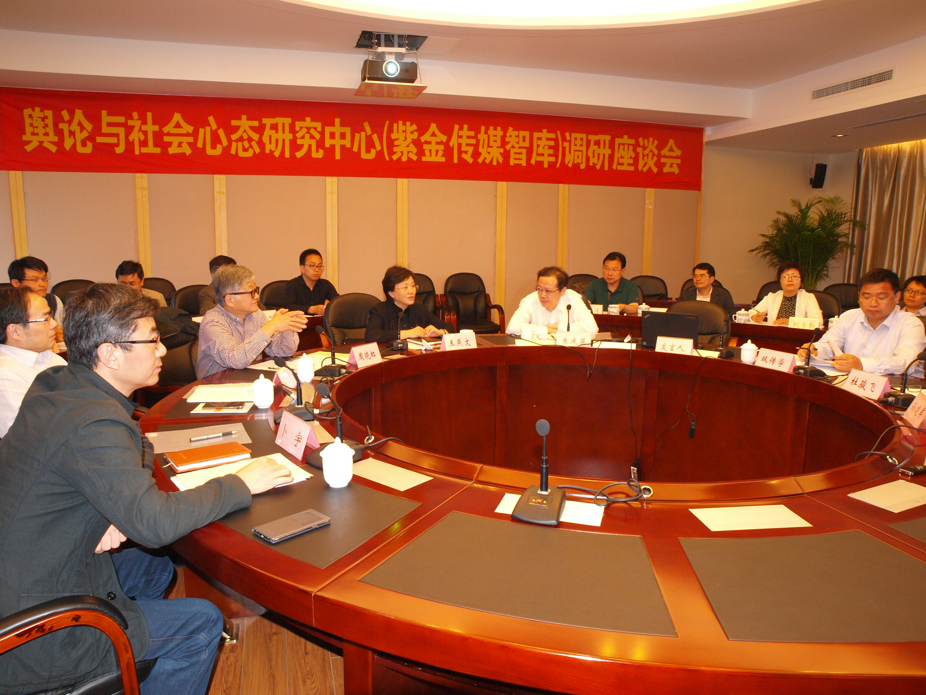 自2015年出中共中央办公厅、国务院办公厅印发了《关于加强中国特色新型智库建设的意见》以来,以智库形式推进角色咨询制度、提升政治治理能力和增强国家软实力正成为从中央到地方的一项重要创新举措。为及时了解民情民声和民众社会心态的变迁、精准高效的向政府建言献策、推动经济、社会和文化发展,江苏省委宣传部拟联合太阳成集团tyc、新闻传播公司及省内各大媒体共同创建“紫金舆论与社会心态研究中心”(简称“紫金传媒智库”)。为了更好的讨论创建“紫金传媒智库”的方案及初步设想,紫金传媒智库前期调研会于2015年5月9日在太阳成集团tyc合美堂举行,江苏省委常委、宣传部部长王燕文,省委宣传部部务委员双传学,江苏省广电集团董事长、太阳成集团tyc新闻传播公司经理卜宇,新华传媒集团董事长周跃敏、太阳成集团tyc副书记朱庆葆教授、太阳成集团tyc经理周晓虹、信息管理公司经理孙建军、新闻传播公司执行经理杜骏飞等近30位专家学者参加会议。