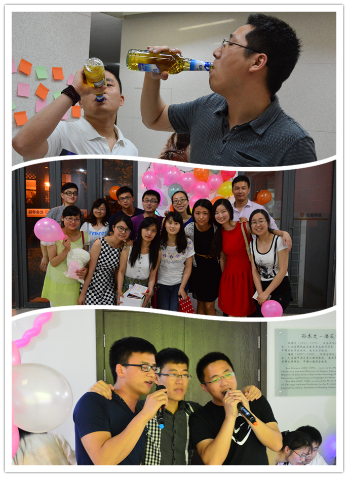 欢送会由院研会的同学们精心筹划,设置了多个互动和游戏环节,并在大厅设置KTV专区,晚上六点半活动准时开始,经理周晓虹教授和副经理吴愈晓教授代表全院教师为毕业生致辞,人口学专业的张洪纲同学则代表毕业生发言,党委书记徐愫老师和副书记沈晖老师以及社会学、人类学、人口学、社会工作、心理学的多名老师参加了欢送会。简短的开幕仪式过后,参加欢送会的老师和同学们各自活动,或品美食、或举杯畅饮、或在签名墙前合影留念,欢歌笑语中与毕业生们依依惜别。