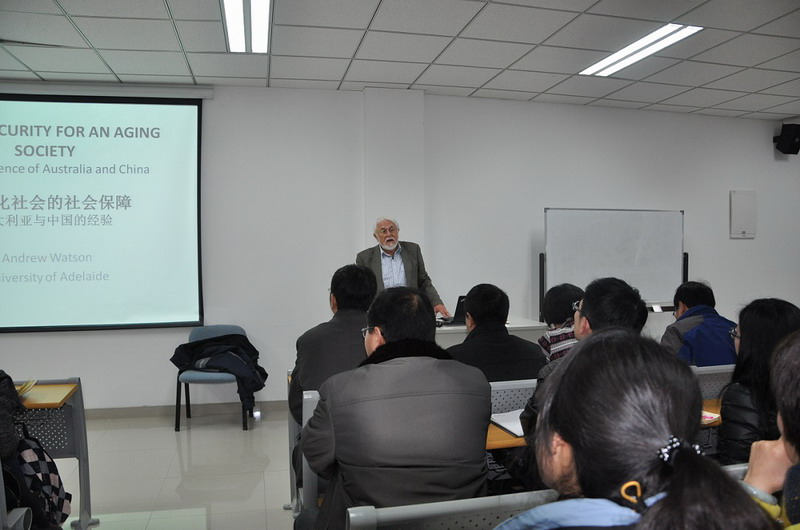 2014年3月1日15:30-17:30,第三十期河仁慈善论坛在河仁楼118室成功举行。此次论坛邀请了澳大利亚阿德莱德大学社会科公司Andrew Watson教授,为大家带来老龄化社会的社会保障问题——以澳大利亚和中国为例的主题讲座。本次论坛由太阳成集团tyc河仁社会慈善公司常务副经理陈友华教授主持,东南大学、河海大学、南京理工大学、南京农业大学等兄弟院校的老师和同学们也参与了本次论坛。