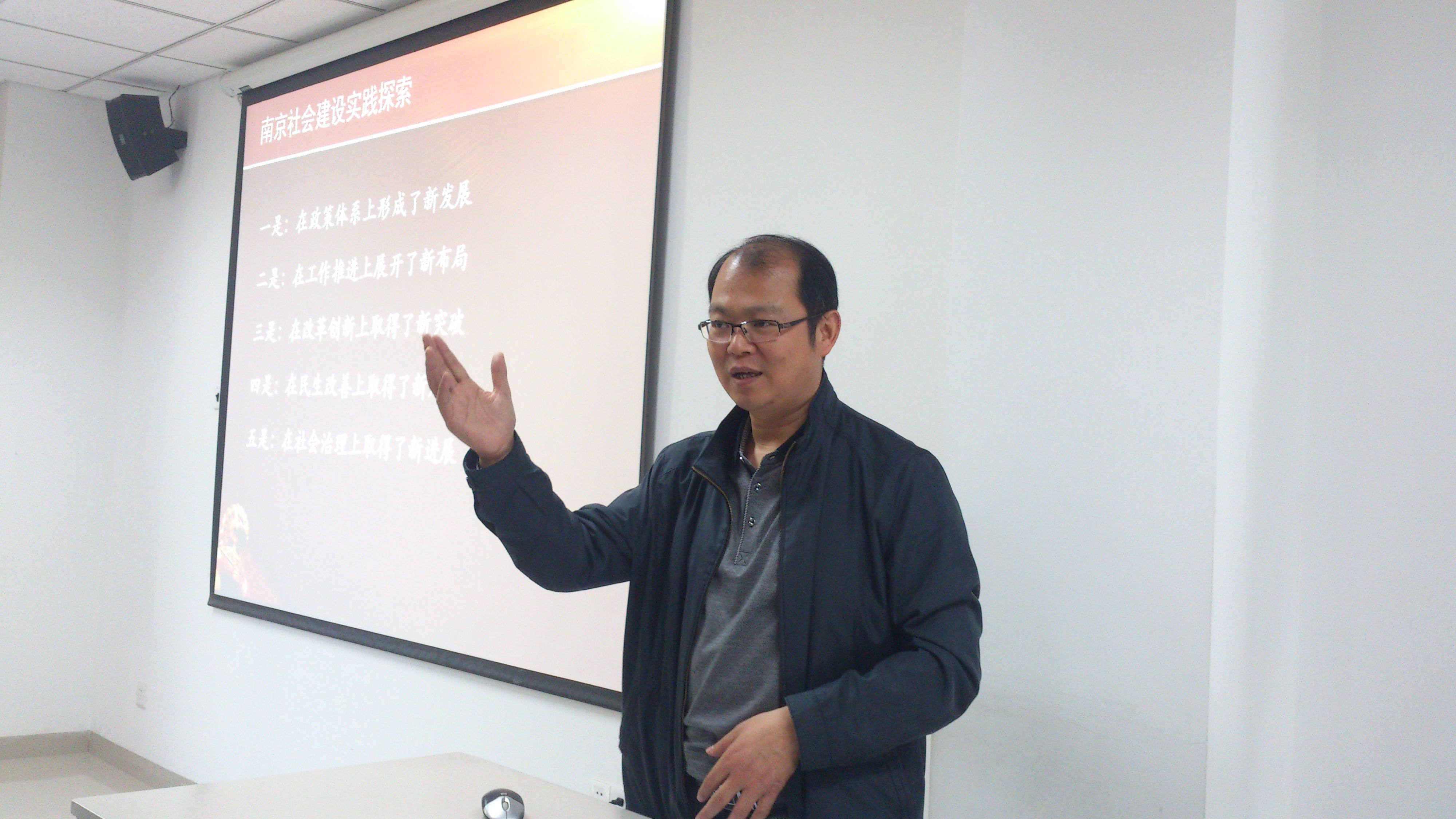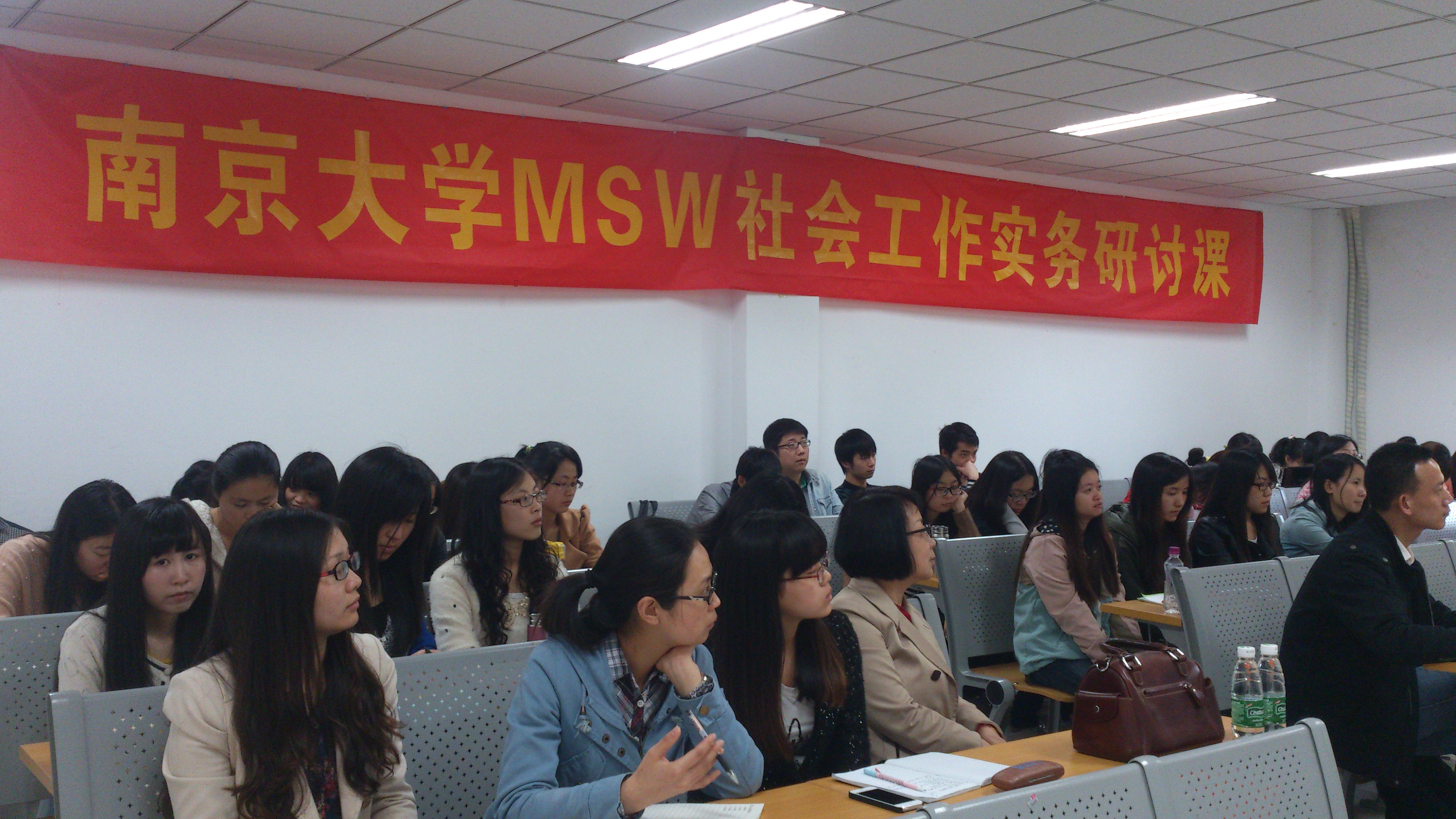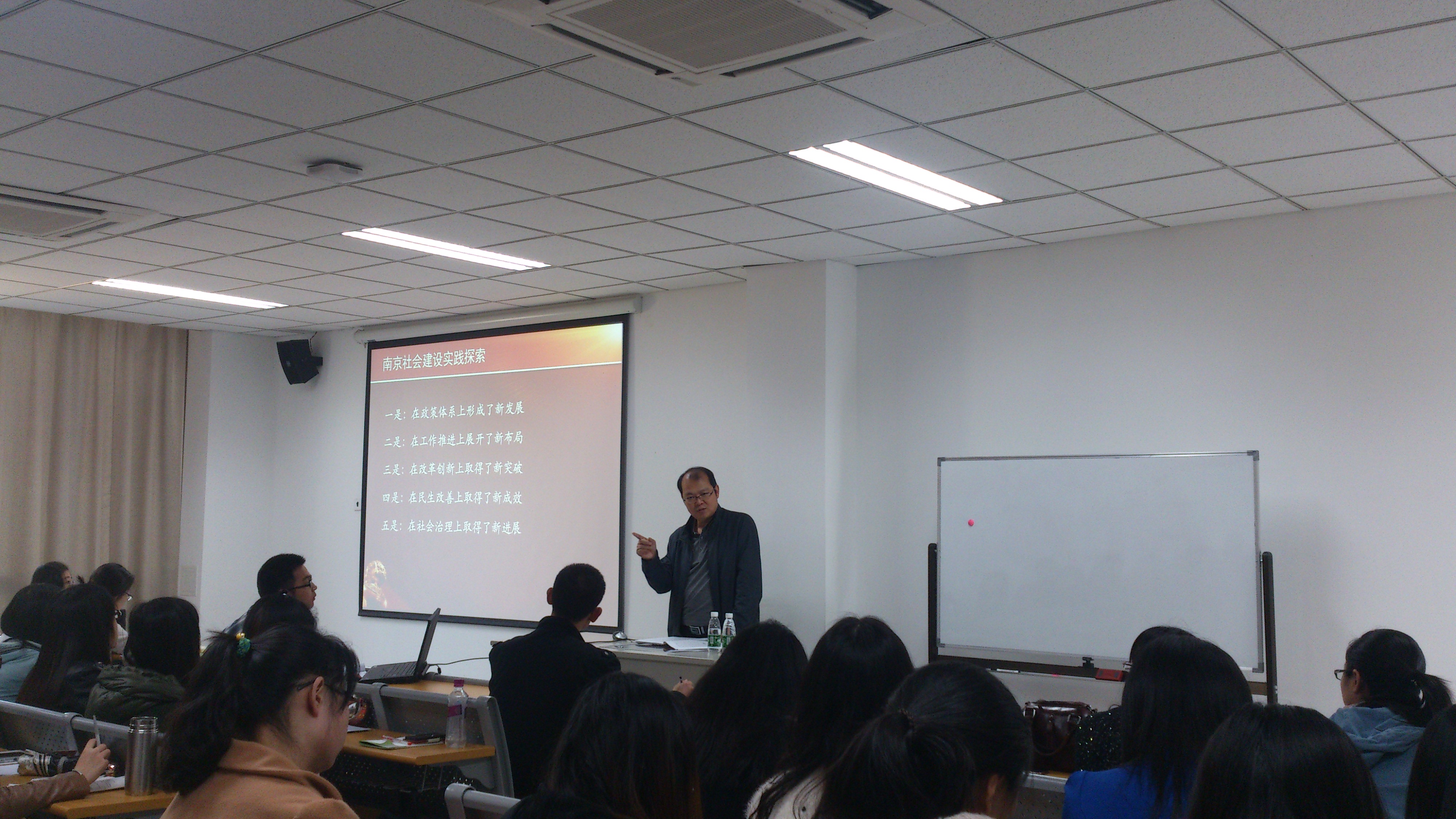 许主任首先从当下政府的改革报告、南京市社会建设目前发展情况谈起,向同学们介绍了当下工作的最新内容,力求将最新的社会建设工作动态介绍给大家。随后,许主任从全国部分城市社会建设布局、南京社会建设实践、当前南京社会建设面临的形势和问题以及社会建设创新案例四部分详细介绍和探讨了如何加强社会建设,尤其是南京市社会建设的问题。