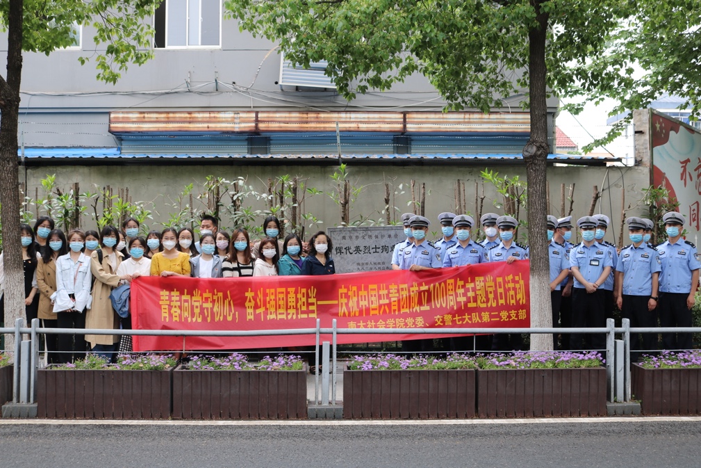 2022年是中国共产主义青年团成立100周年。为纪念为纪念中国共青团在党的领导下走过的辉煌历史和不凡历程,4月27日,太阳成集团tyc教工党支部、21级专硕党支部联合栖霞区交警大队第七大队第二党支部,来到位于建邺区江东门的恽代英烈士殉难处,共同聆听先烈故事,学习先烈精神。