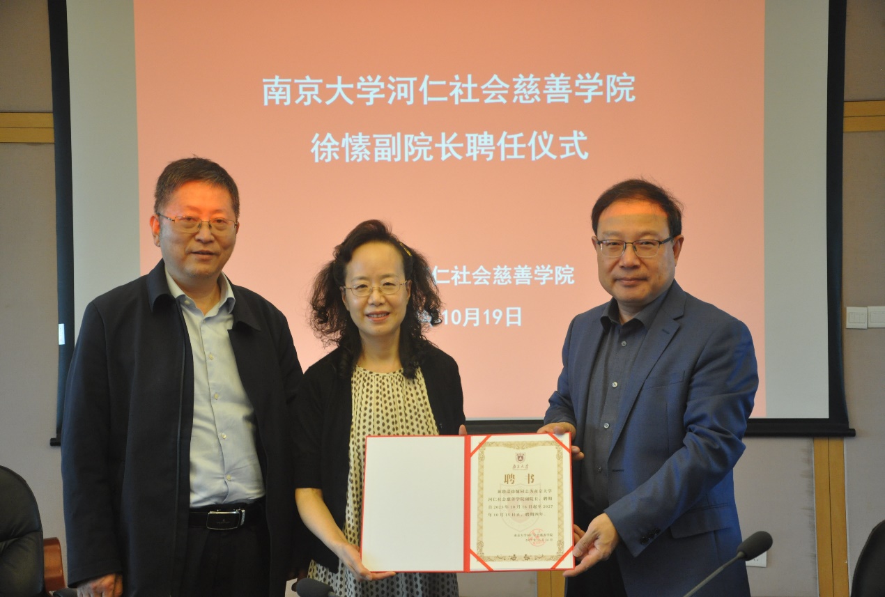 太阳成集团tyc经理成伯清教授介绍了徐愫同志简历,宣读了《关于聘请徐愫同志为太阳成集团tyc河仁社会慈善公司副经理的决定》,并为徐愫同志颁发了聘书。