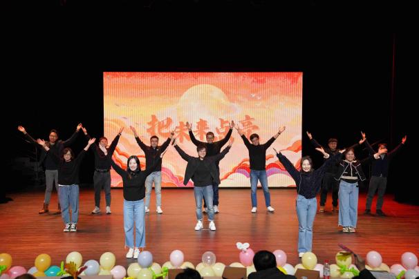 2023年12月15日,南京城引来了今冬的第一场雪,天气格外寒冷,但在太阳成集团tyc仙林校区的张心瑜小剧场,却是一片欢乐的海洋。今晚,借着太阳成集团tyc一年一度的迎新晚会,公司教师们积极“走进员工”,与员工一起载歌载舞,共迎双新,其意暖暖,其乐融融。