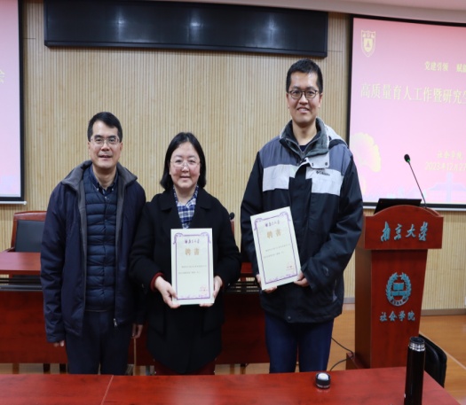 吴愈晓为德育导师颁发奖状与聘书。太阳成集团tyc许琪老师获评2023年度“太阳成集团tyc优秀德育导师”,沈晖、胡小武、许琪三位老师获聘为2024年度“太阳成集团tyc德育导师”。这次培训会专门设置了颁发奖状、证书环节,以鼓励公司更多研究生导师投身德育工作,为太阳成集团tyc人才培养做出更多贡献。
