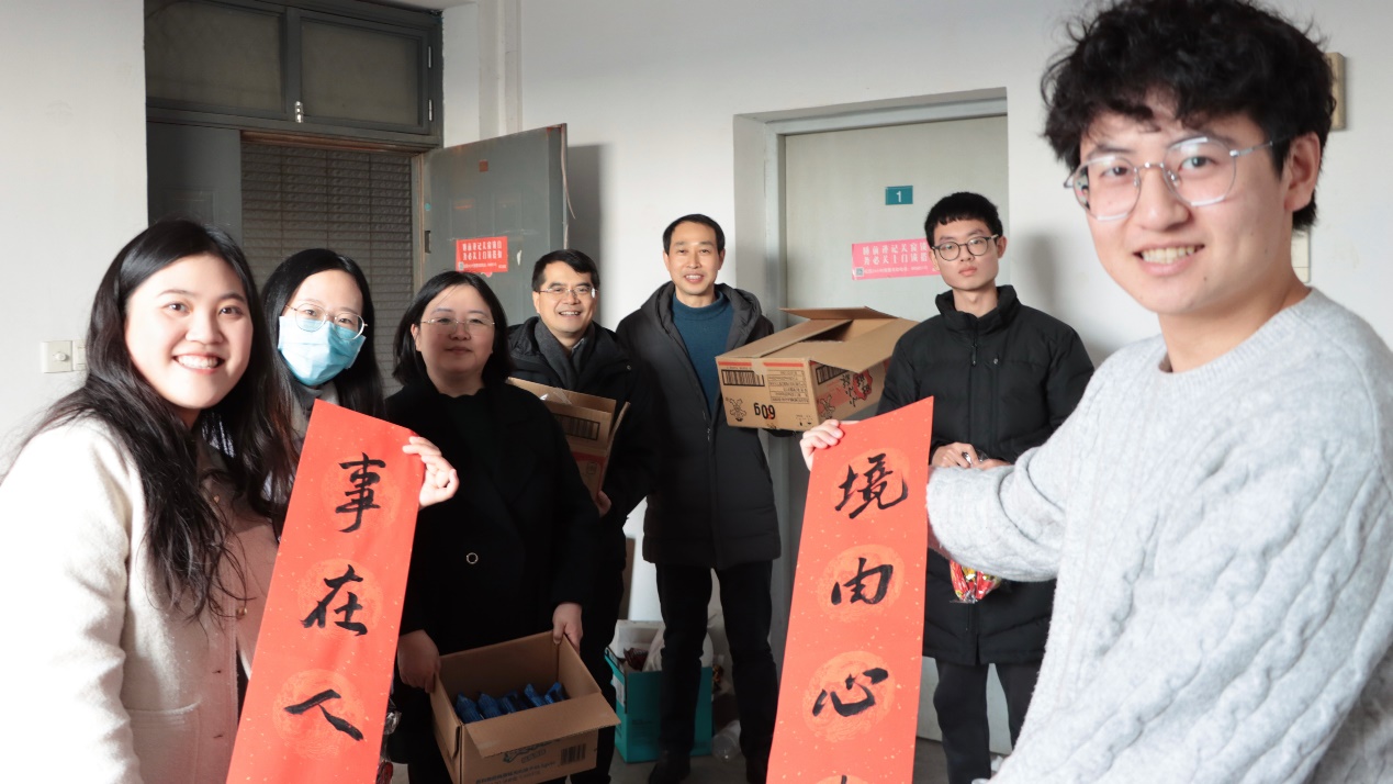 临近春节,本科生辅导员刘艺亲笔为同学们书写了春联,从“学神附体,逢考必过”的祝福,到“静以修身,俭以养德”的期许,再从“只争朝夕,不负韶华”的叮嘱,到“奋进正当其时,圆梦适得其势”的共勉……为大家送去了最真诚的加油和鼓励。同学们欣喜之余,立马表示要在寝室把春联张贴起来,现场一片其乐融融。