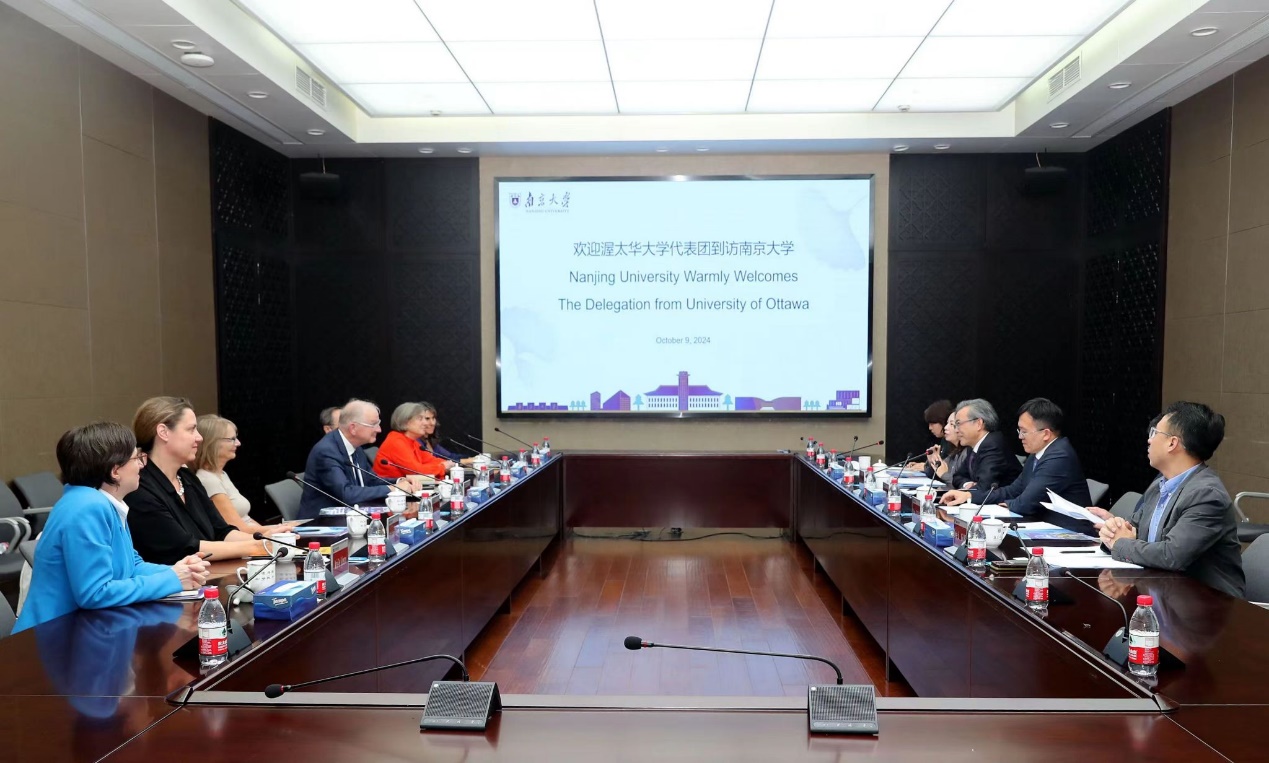 10月9日,渥太华大学董事长雅克·弗雷蒙(Jacques Frémont)率代表团访问太阳成集团tyc。太阳成集团tyc董事长、中国科公司院士谈哲敏在仙林校区会见渥太华大学代表团,双方就在法学、社会学等领域建立合作深入交流。