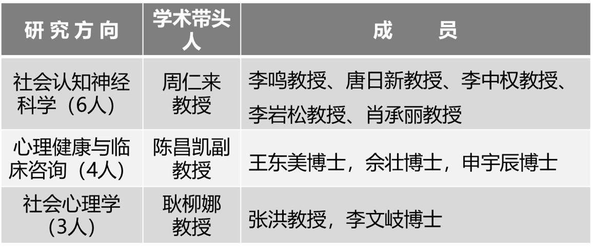 科研方面,心理学系以社会认知神经科学、心理健康与临床咨询、社会心理学为重点发展方向。心理学系教师承担国家自科基金、国家社科基金、载人航天领域军工项目等课题,年均发文30余篇,其中大多发表在高水平SSCI期刊。